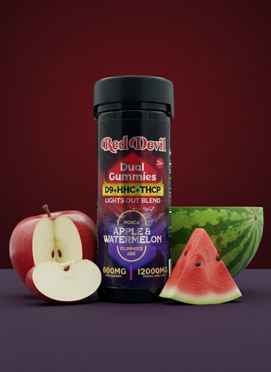 Unlock a potent and relaxing experience with RedDevil Gummy D9+HHC+THCP Apple Watermelon, an expertly crafted blend designed for ultimate enjoyment. These gummies pack a punch with 600mg of combined Delta-9 THC, HHC, and THCP per gummy, offering a blissful, soothing Indica experience. Whether you’re unwinding after a long day or seeking to relax your mind and body, each gummy delivers the perfect balance of euphoria and calm. The combination of high-quality ingredients ensures a premium product that offers reliable potency and effects with every bite.